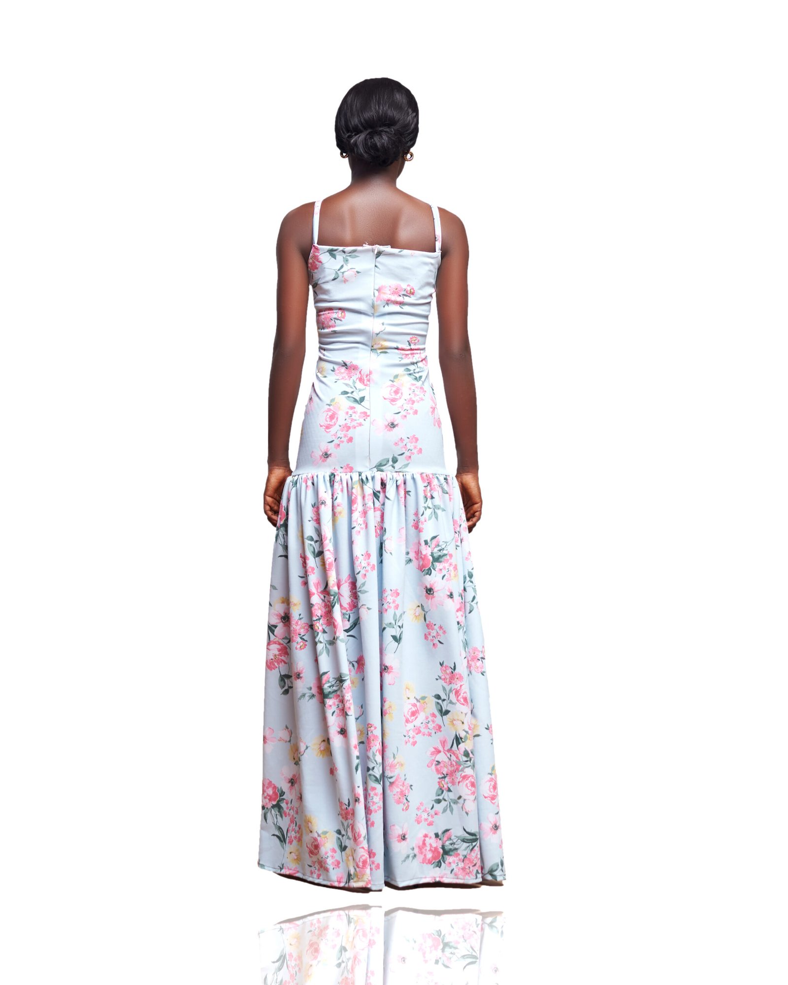 Floral Spaghetti Strap Maxi Dress — a light, romantic piece perfect for sunny days and special evenings. Designed in a soft pastel blue hue and adorned with delicate pink and yellow floral prints, this dress brings a breath of fresh air to your wardrobe.